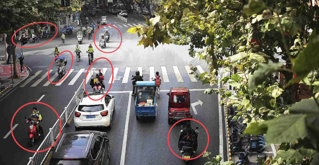 【违法行为】:未佩戴安全头盔、违法加装遮阳(雨)篷
